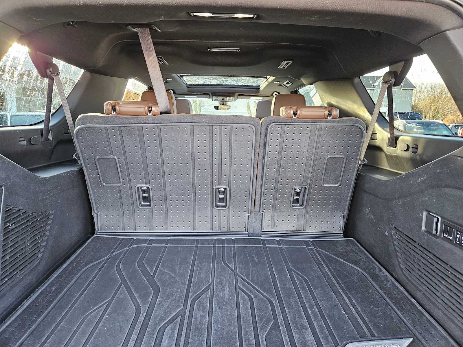 HIGH COUNTRY DELUXE includes (KSG) Adaptive Cruise Control, (C3U) Panoramic power sunroof, (NHT) Max Trailering Package, (B3L) power-retractable assist steps with perimeter lighting and (F47) Air Ride Adaptive suspension, SUSPENSION, AIR RIDE ADAPTIVE, AUDIO SYSTEM, CHEVROLET INFOTAINMENT 3 PREMIUM SYSTEM WITH GOOGLE BUILT-IN 10.2 diagonal HD color touchscreen, includes multi-touch display, AM/FM stereo, Bluetooth® streaming audio for music and most phones; featuring wireless Android Auto® and Apple CarPlay® capability for compatible phones, advanced voice recognition, in-vehicle apps, personalized profiles for infotainment and vehicle settings.) (STD), ENGINE, 6.2L ECOTEC3 V8 with Dynamic Fuel Management, Direct Injection and Variable Valve Timing, includes aluminum block construction (420 hp [313 kW] @ 5600 rpm, 460 lb-ft of torque [624 Nm] @ 4100 rpm) (STD), TRANSMISSION, 10-SPEED AUTOMATIC electronically controlled with overdrive, includes Traction Select System including tow/haul (Standard with (L87) 6.2L EcoTec3 V8 engine only.) (STD), ADVANCED TRAILERING PACKAGE includes (PZ8) Hitch Guidance with Hitch View, (JL1) trailer brake controller and (UET) Smart Trailer Integration Indicator Also includes (UKV) Extended Side Blind Zone Alert.), Leather Seats, Third Row Seat, Navigation, 4x4, Quad Bucket Seats