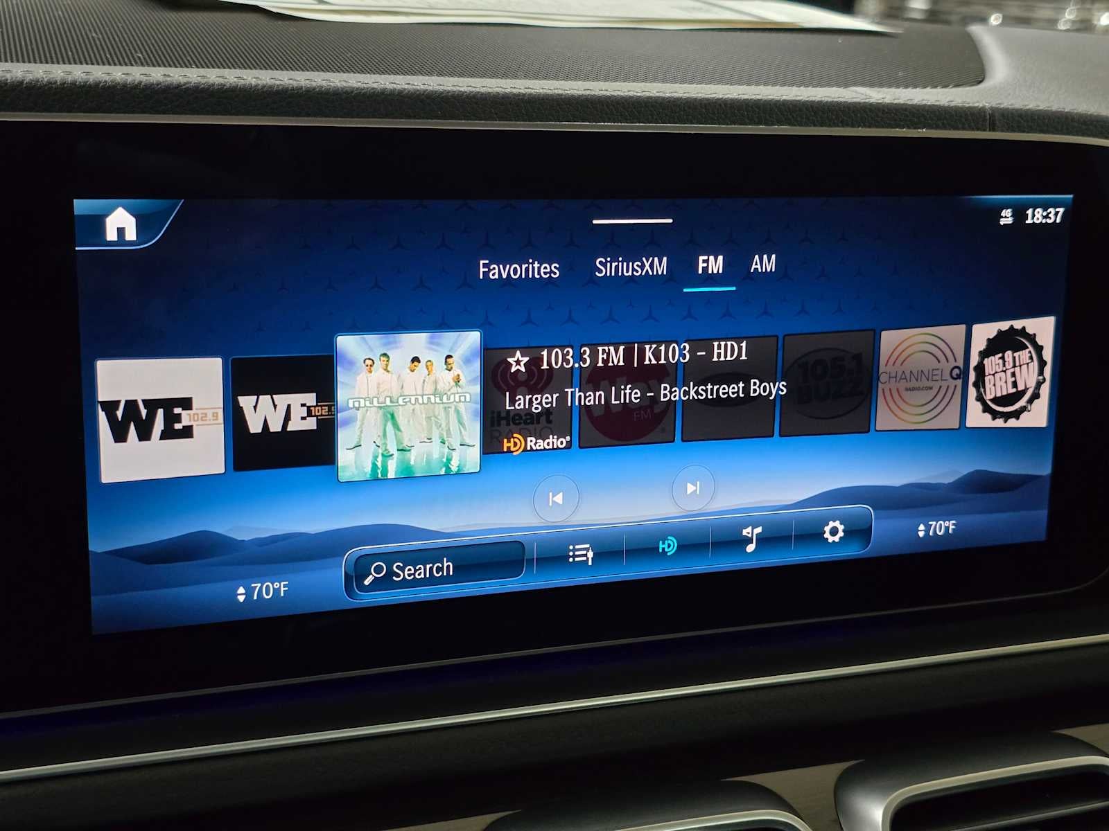 - Radio: Burmester Surround Sound System -inc: Dolby Atmos, music streaming, sound personalization, 13 speakers, 590-watt amplifier, Frontbass technology, voice control w/Natural Language Understanding, wireless Apple CarPlay and Android Auto, 12.3" media touchscreen display, MB navigation w/live traffic and map updates and SiriusXM radio