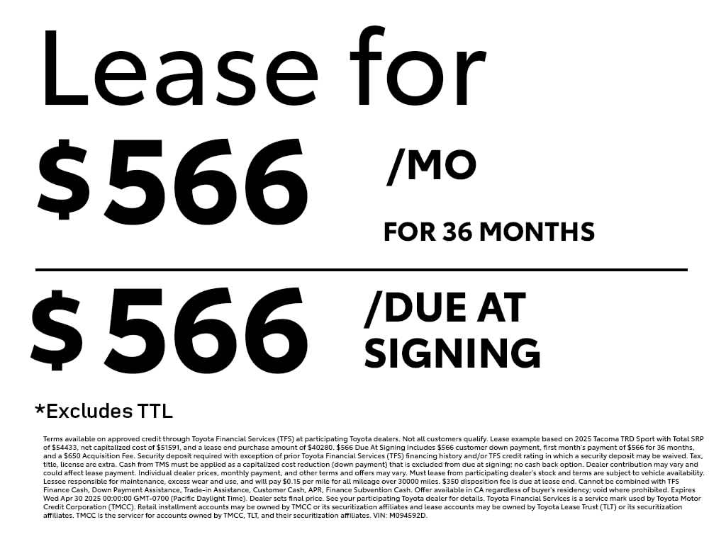 - Vehicle Name: Toyota Tacoma 4WD